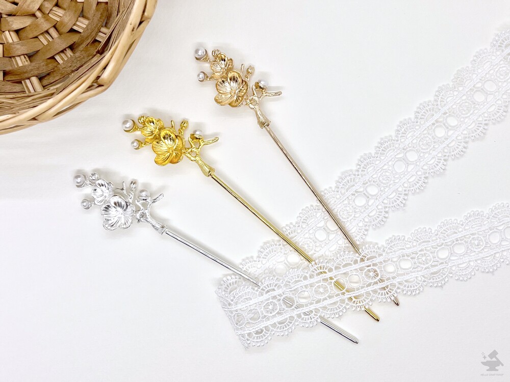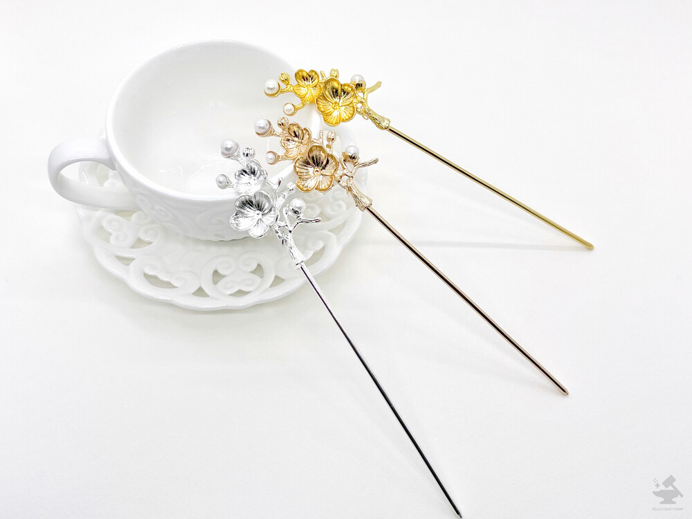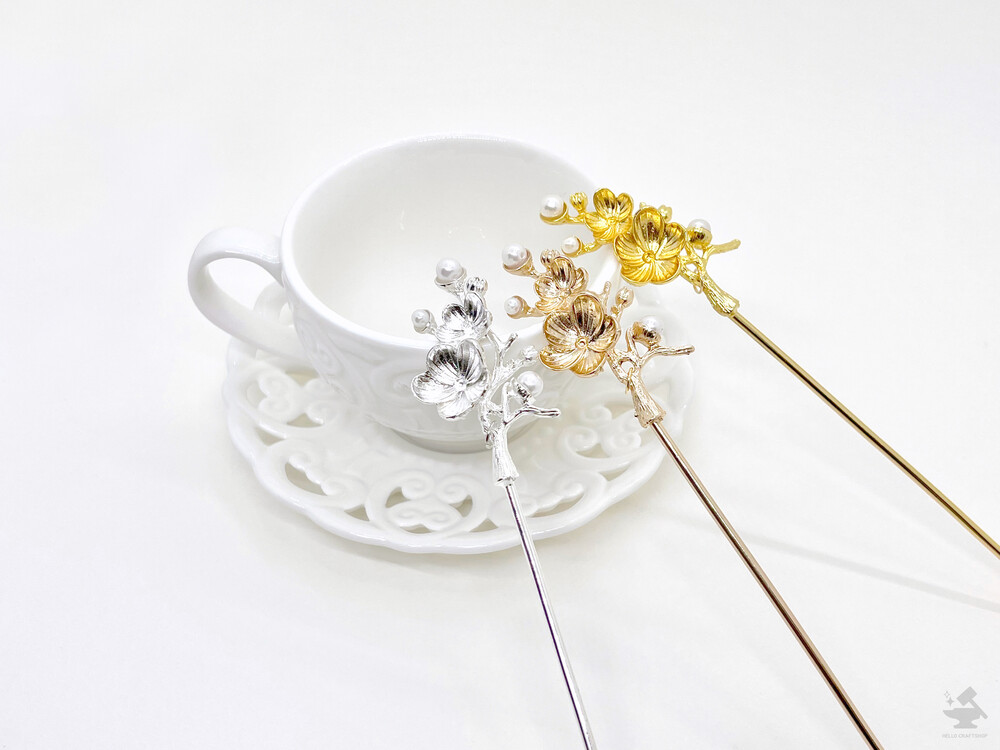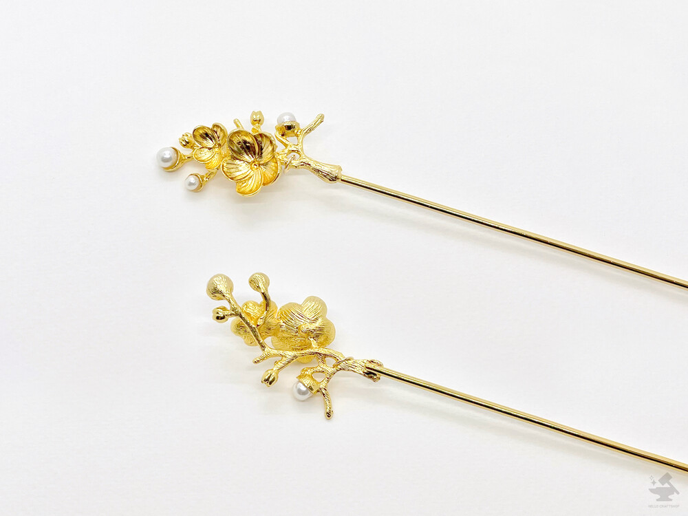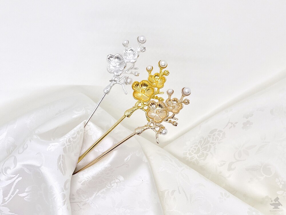 매화 진주장식 메탈 비녀