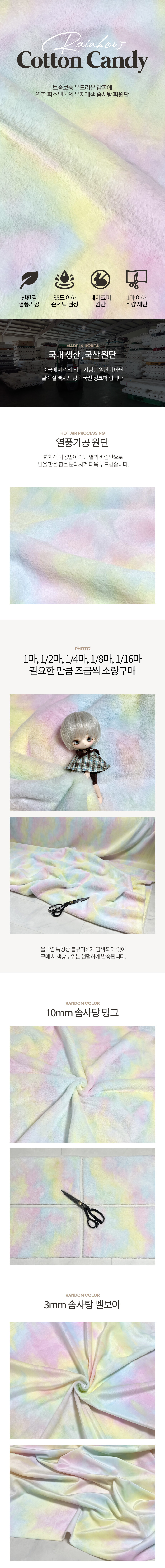 무지개 솜사탕 10mm 밍크털 3mm 벨보아
