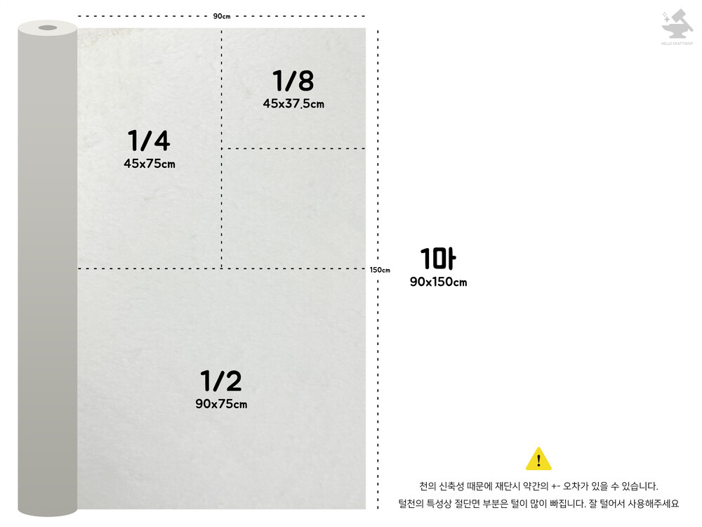 * 재단시 절단면에서 털이 많이 빠집니다.