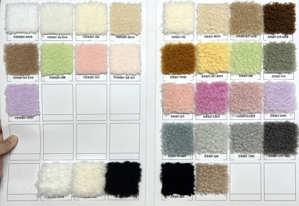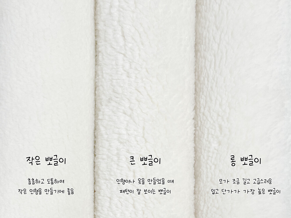 * 털원단은 일반천처럼 절단면에서 올이 주루룩 풀리지 않습니다.