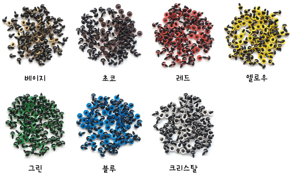 단추눈 ( 컬러5, 10mm, 블랙5, 9, 10mm )
