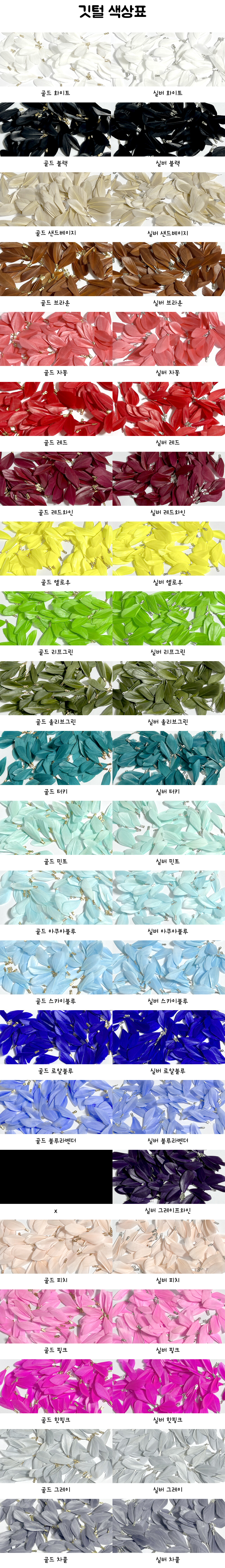 천연 부자재 이므로 깃털의 모양은 수입할때마다 100% 다릅니다.