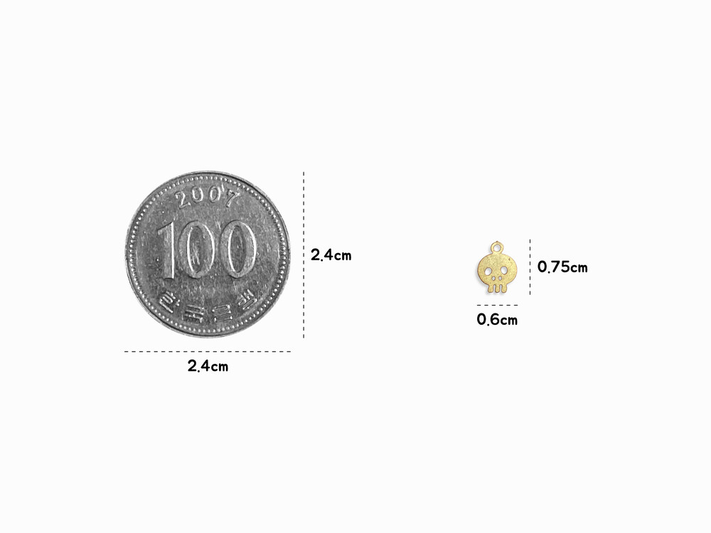 빈티지한 느낌의 도금이 되어있는 미니미 해골 입니다. (녹슨것 아님)