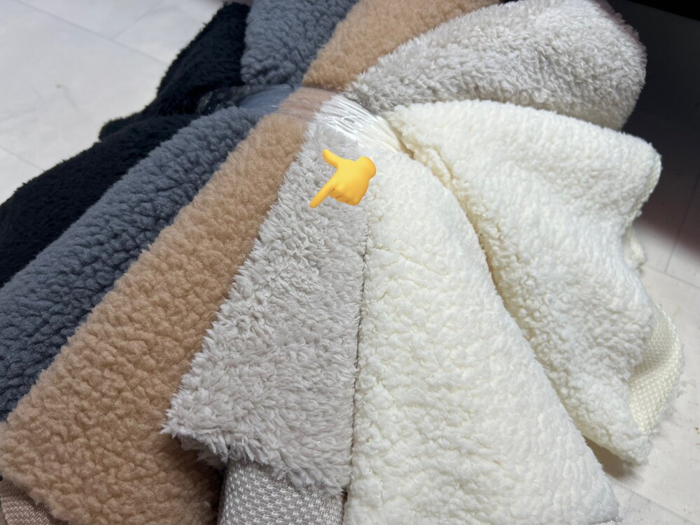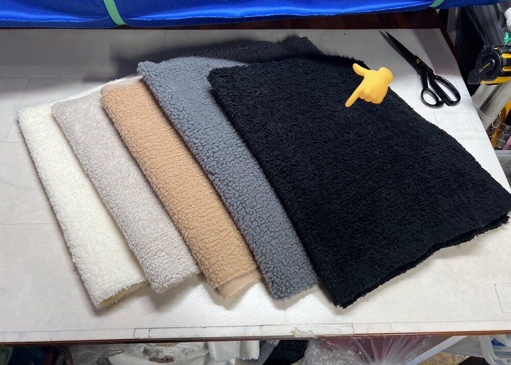 크림색 원단 보다 털모양이 약간 삐죽한,